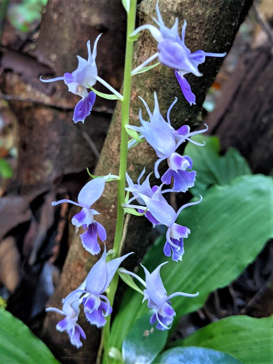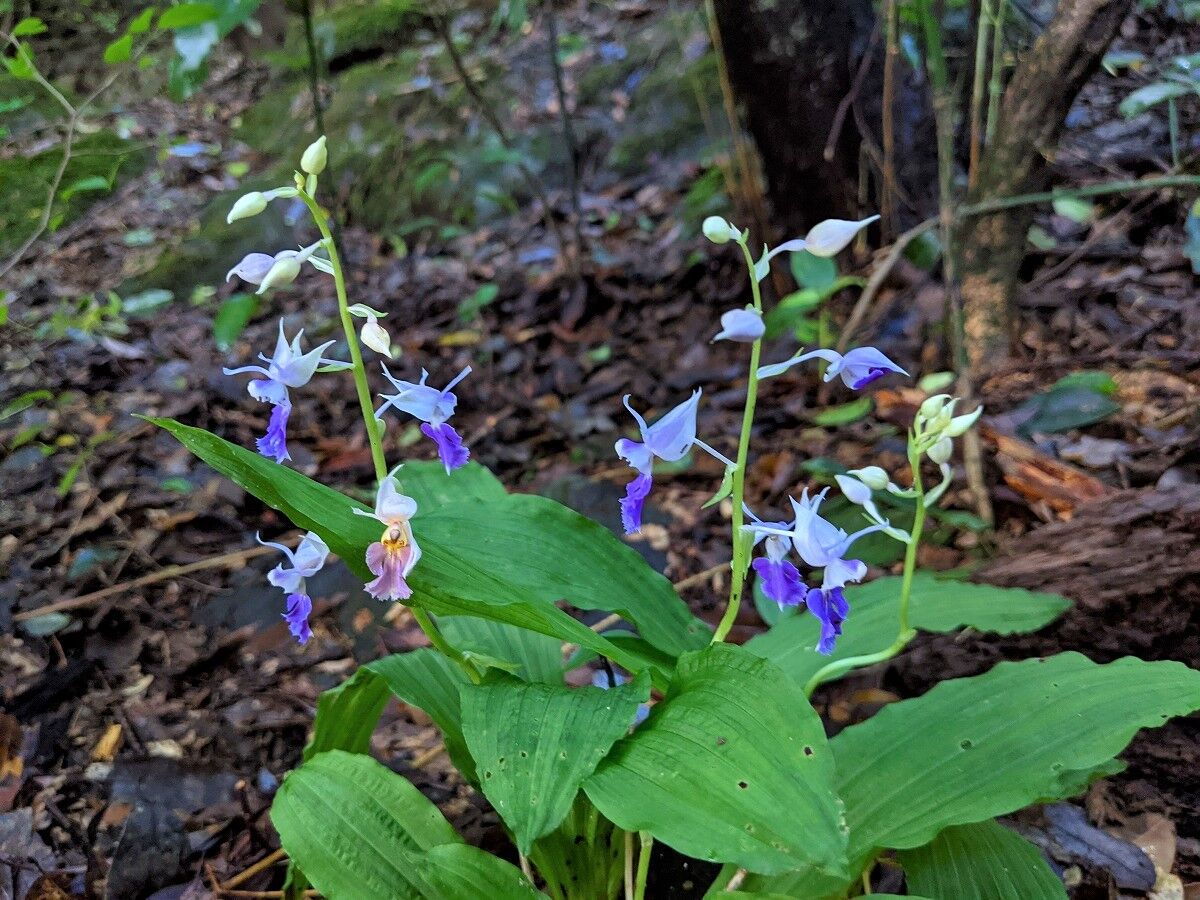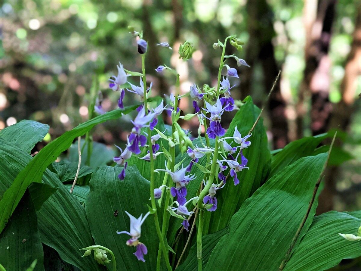 大汗してあえぎながら、たどり着いた自生地、梅雨時期には極端に少雨傾向だったので、例年からすると、株の成長が小さいし、株数も少ない。自然界の微妙な変化に植物たちも戸惑っているかもと、素人分析でした。それはさておき、ここまで見に来るのが目に見えてしんどくなった昨今でもあるが、さあ来年も頑張って見に来たいものと念じております、これだけ涼し気に咲く綺麗な花の魅惑には勝てませんね。