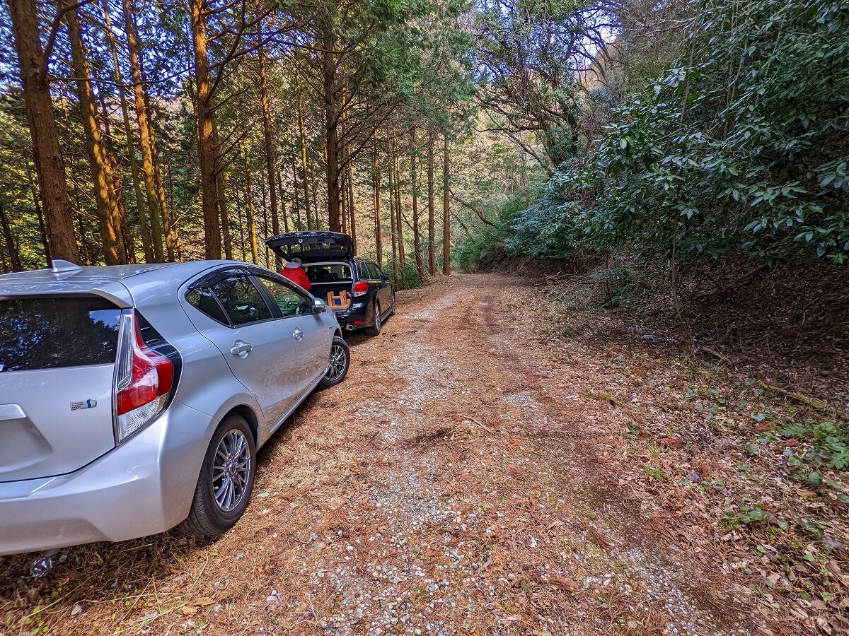 画像には写っていないが一台の車が駐車していた、どうも我々が歩いてきた林道の反対側からここまで車で来れるようである。