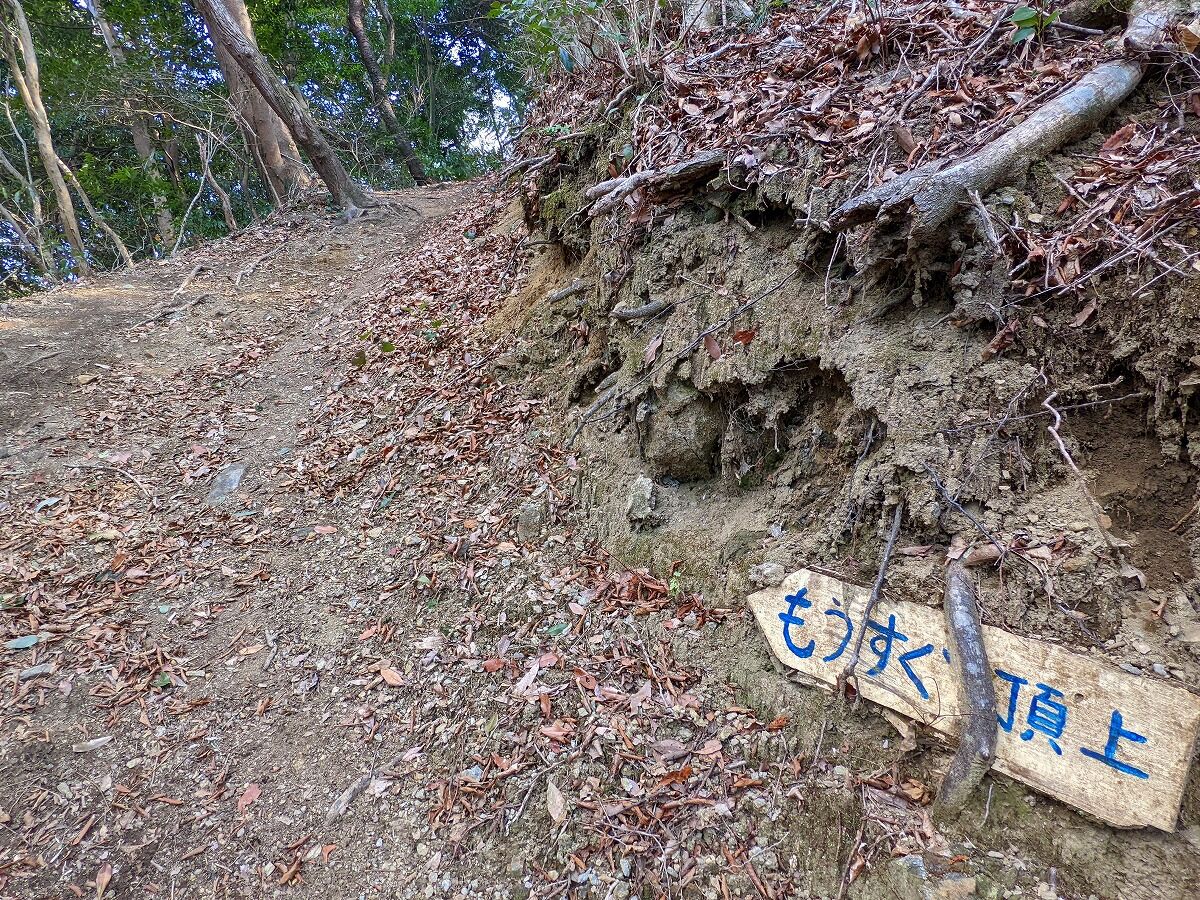 ここら辺の急登が堪えますね~ようやく台上山頂が見えてきた
