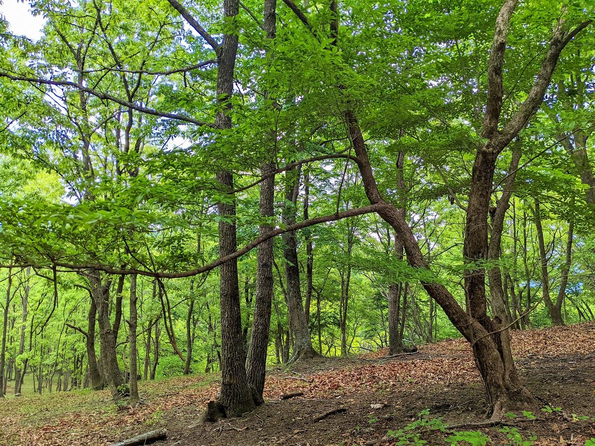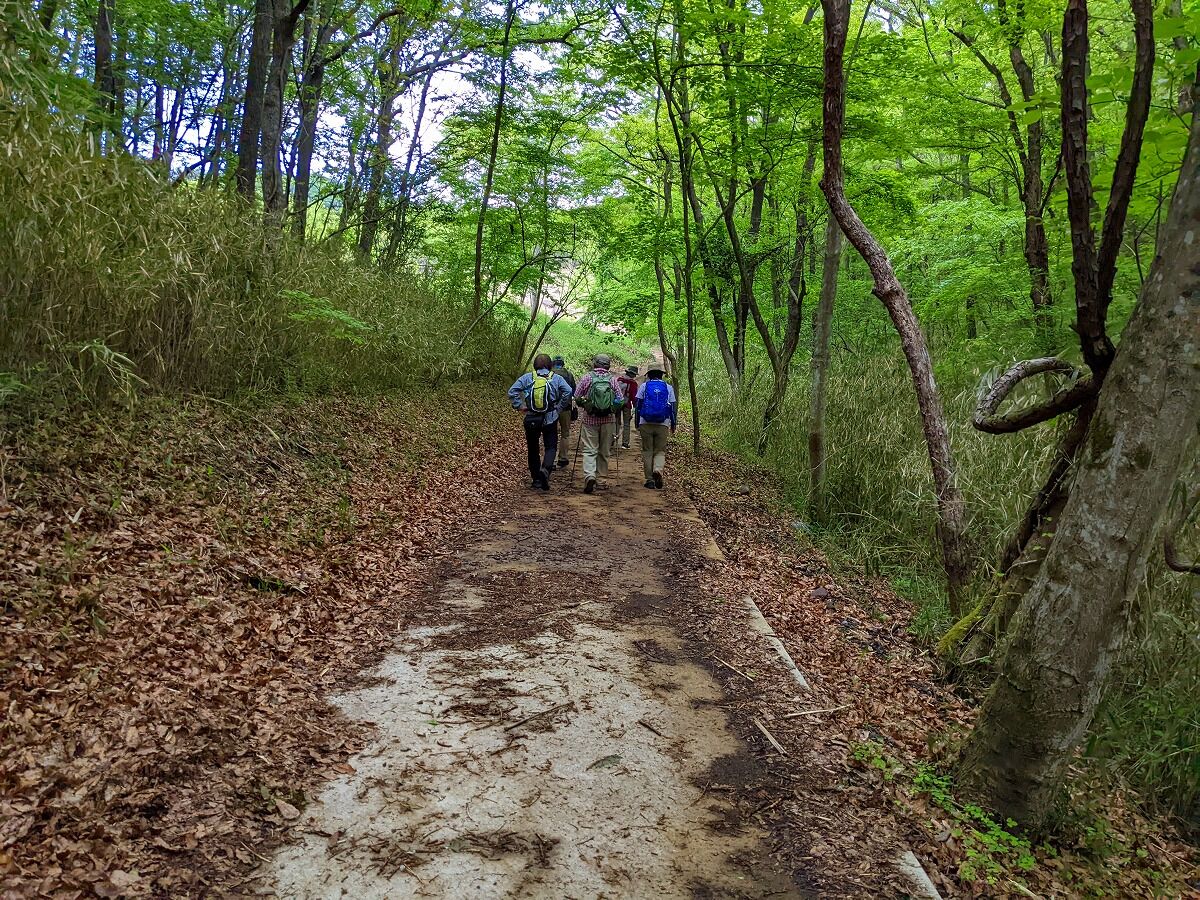 今は目に沁みるような新緑の頃、これぞ森林浴だ!と樹間は新緑一色の快適な散策路は続く