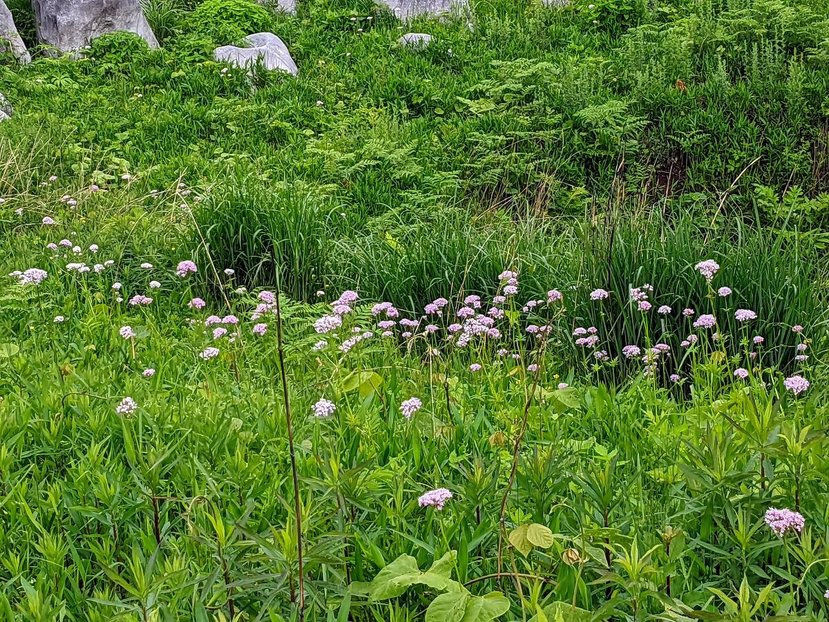 台に行けば 高低差のある散策路に行かずとも山野草は見る分にはいくらでもある、カノコソウも草原を埋め尽くすように花盛りです。