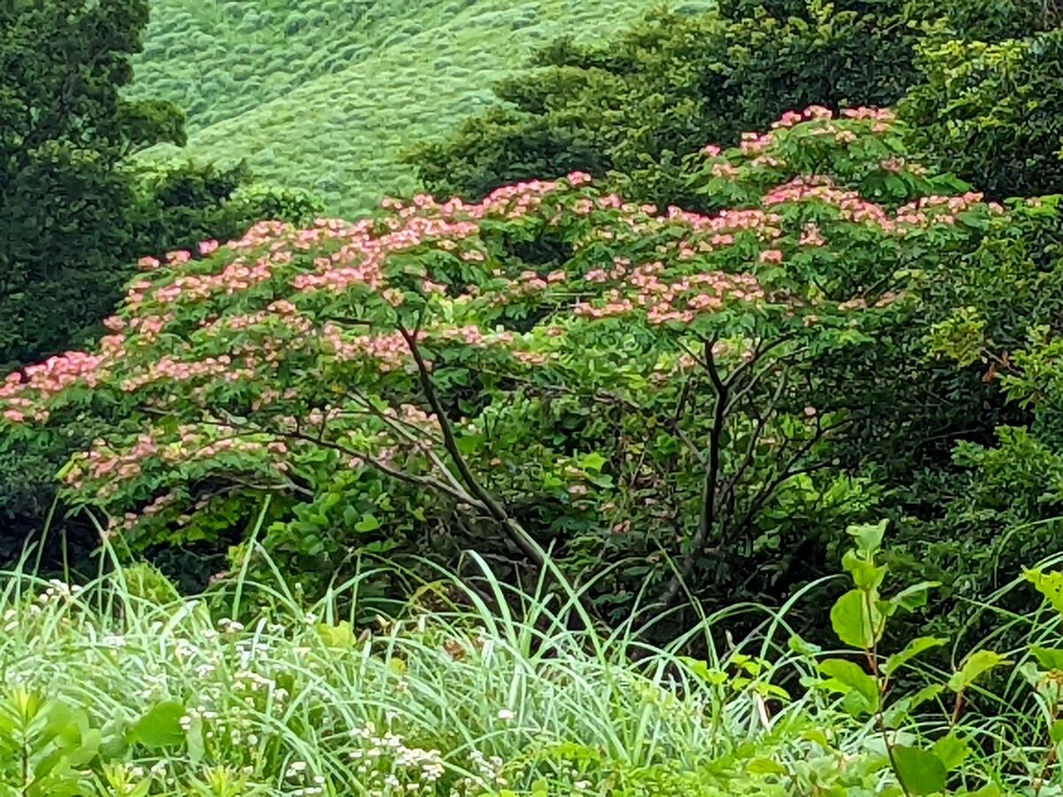 天気予報によれば 南方海上を台風が北上中らしい、嵐の前に、それに早朝の涼しい時間帯に台上を膝のリハ兼ねて足慣らしに花散策もと、諸々ついでに歩いてみよう。自分は若干、先について、気になる花を見て、いつもの山友さんと四方台で合流予定。それから主峰 貫山まで一緒に行くことに。感動の表題の一コマで茶が床をゆっくりスタート (7:15)