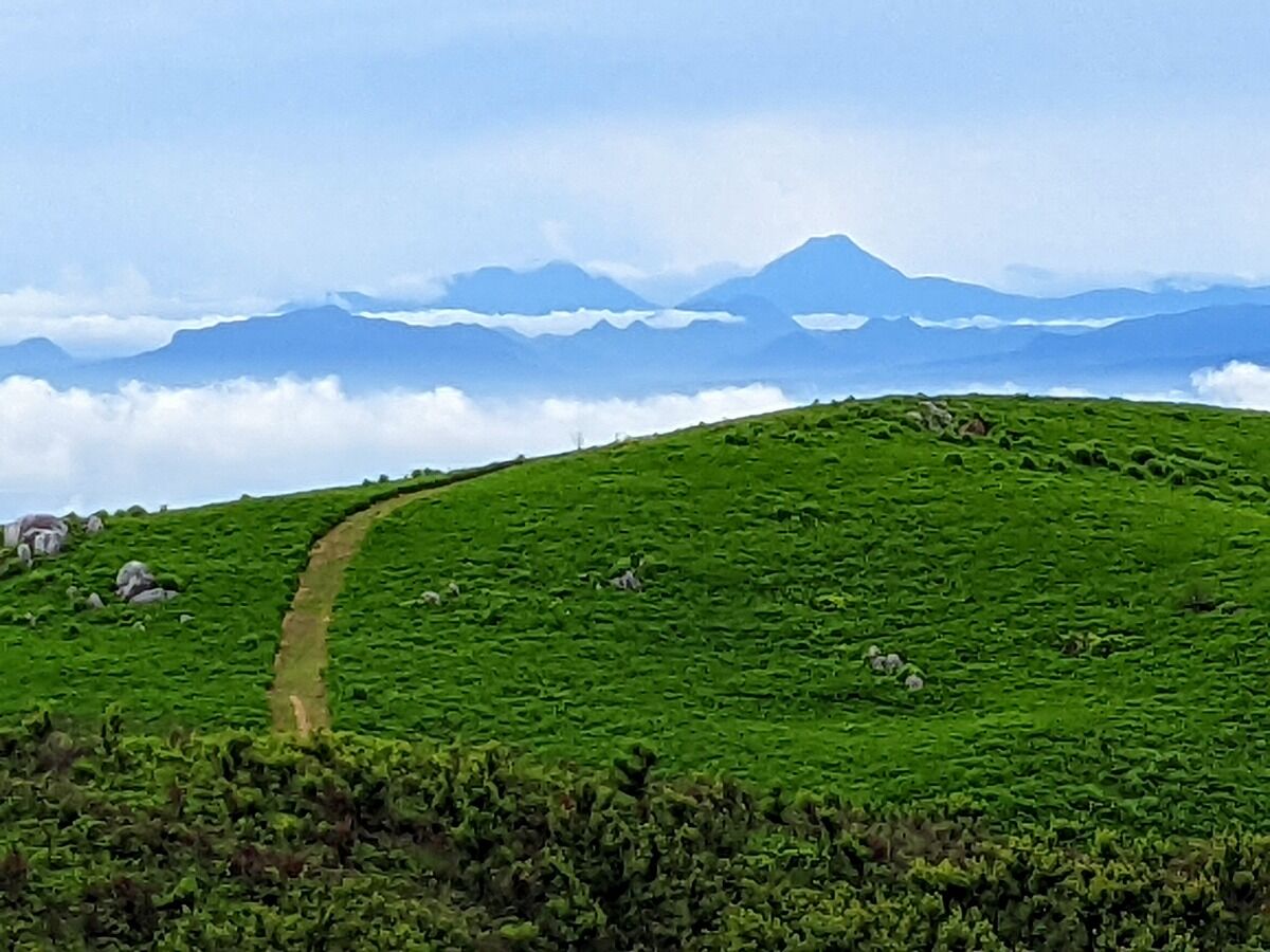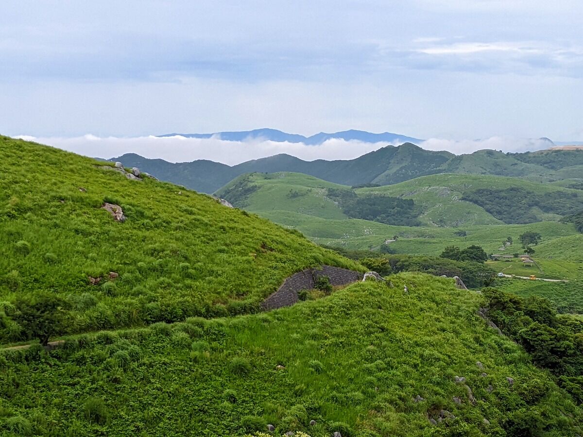 今日は 九州の南方に台風が接近情報に 台上歩きも躊躇したが思い切って台に上がったら まあ、下界の蒸し暑さも何処へやらと感じるように涼しく、快適そのもの、それに 信じられないような遠方のロケと雲海のコラボ、滅多にみれないロケーションにまず感動でした