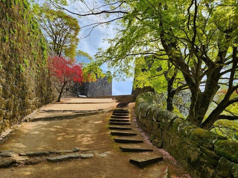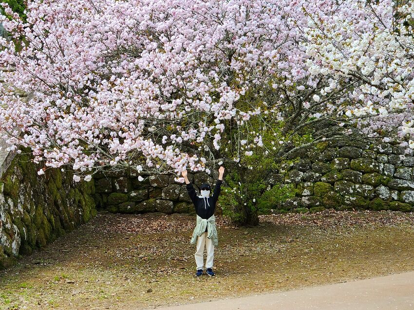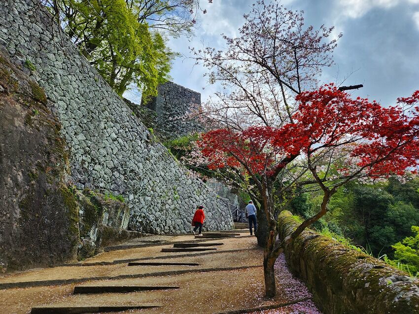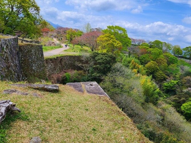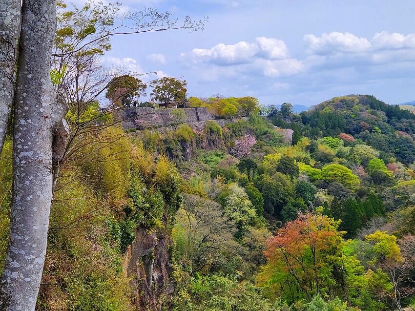 春の家族旅行の二日目は 高校生のお兄ちゃんの希望を優先して 宿から40分弱の岡城址(豊後竹田城)です