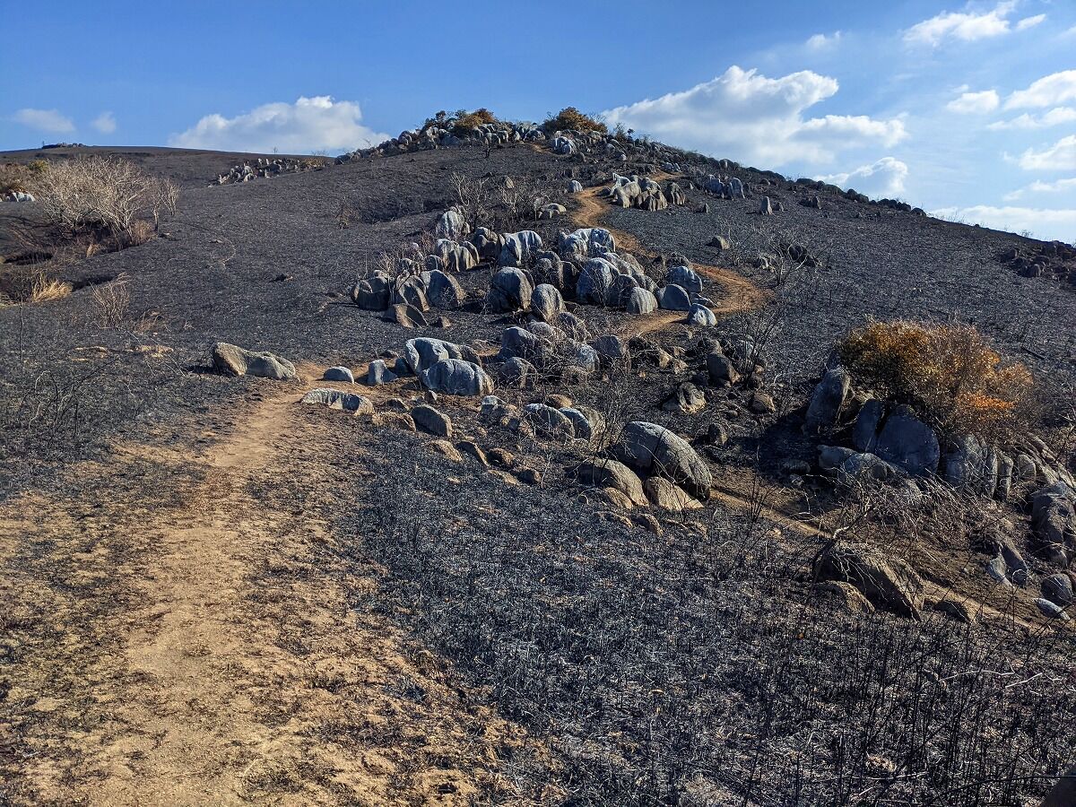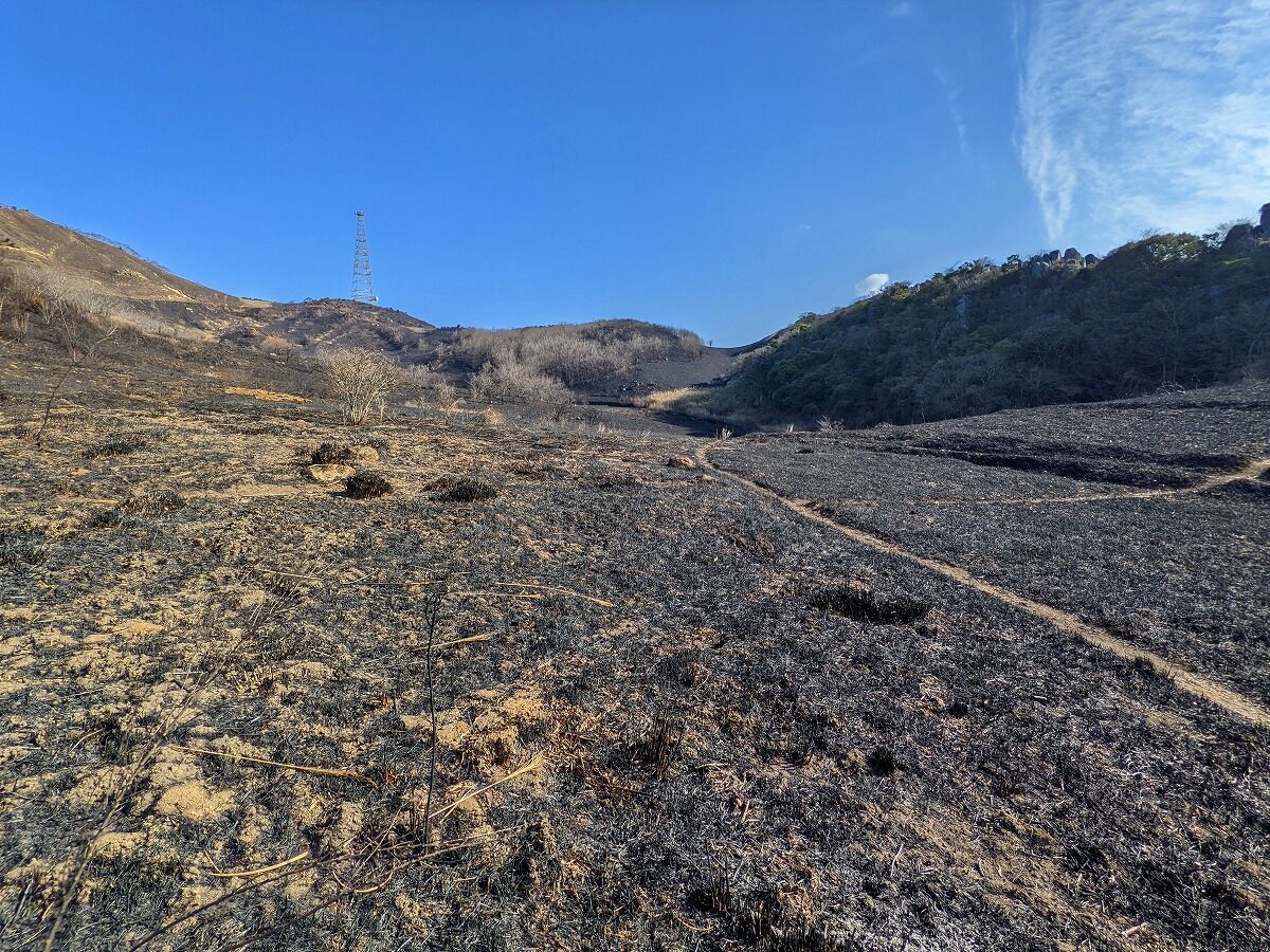 広谷台方面へ進む、唖然とするような焼けっぷり、ここらはかなりブッシュ化していたが