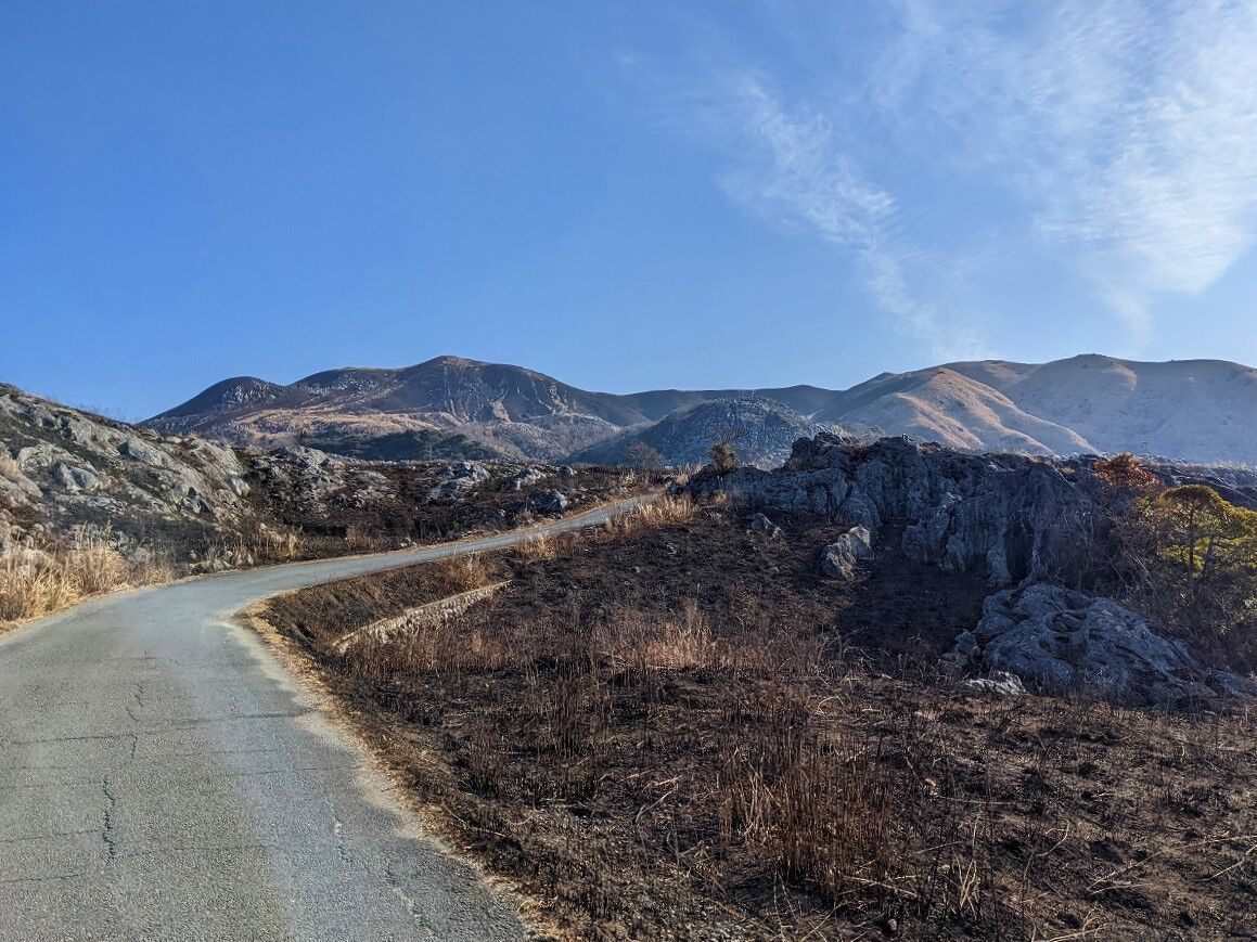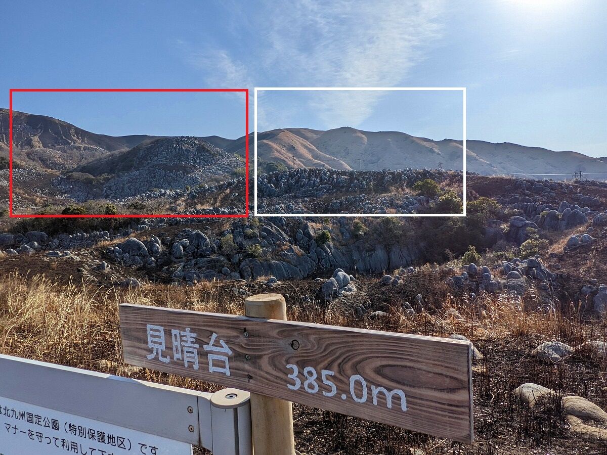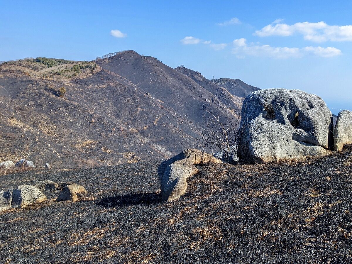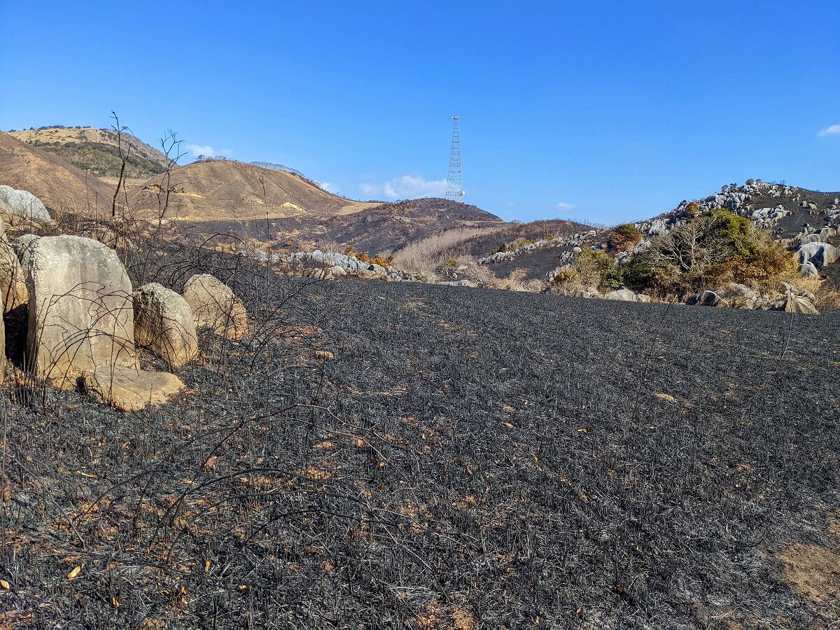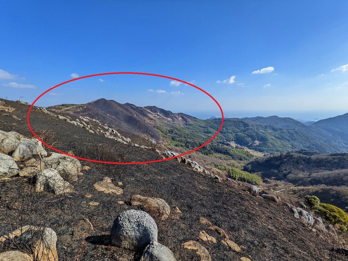 ズームしてみたらこんな感じです、長年 台上歩きをしていますが、この水晶山区域が焼けたこと見たことありません
