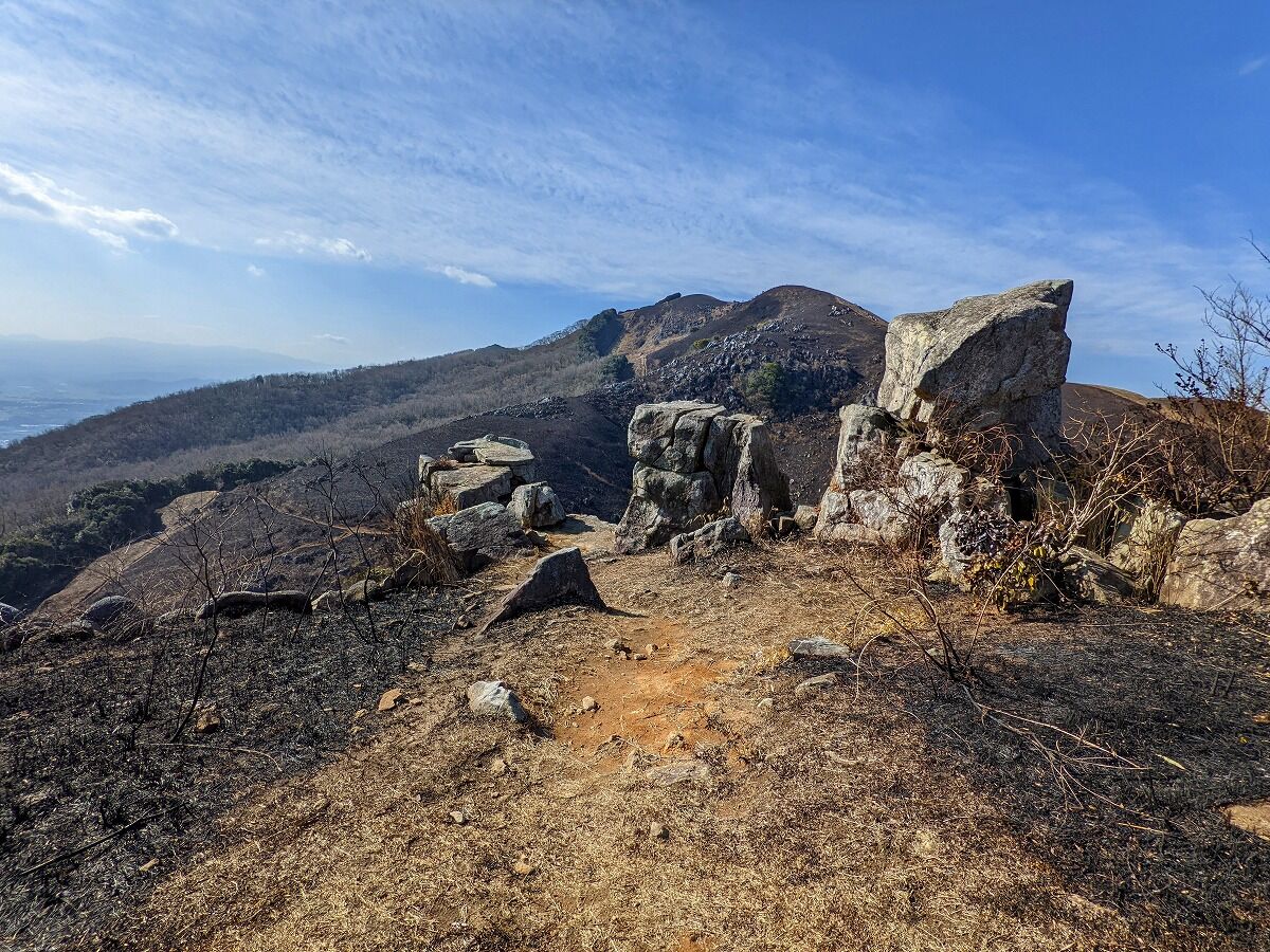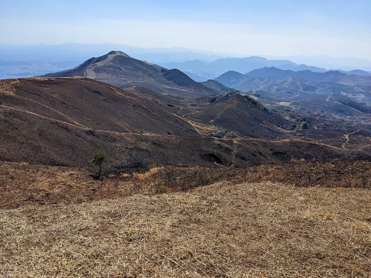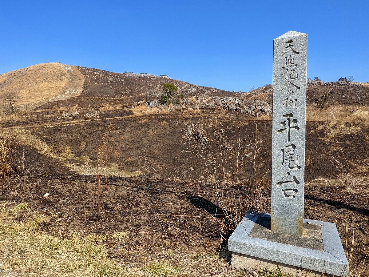 このような野焼き後の台上風景をみながら大平山にとうちゃこ~