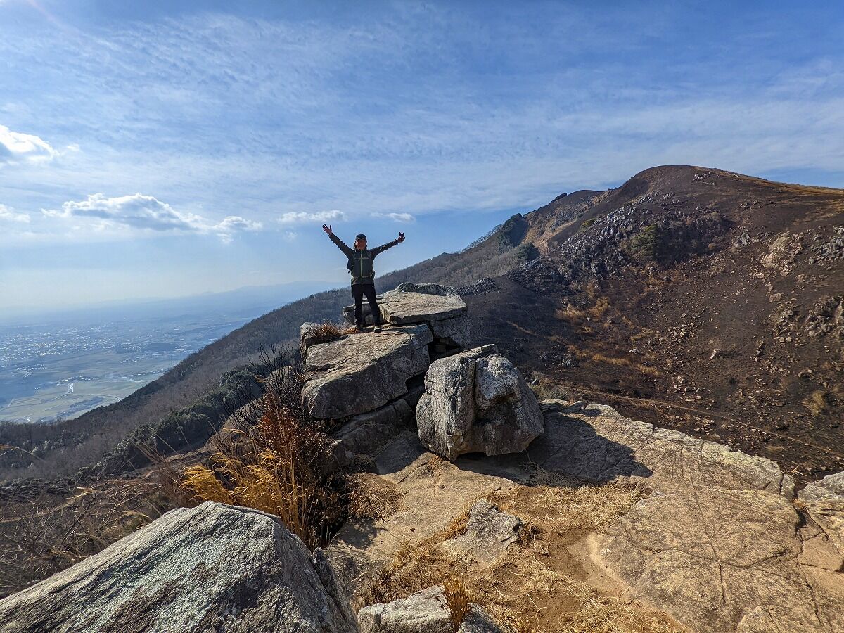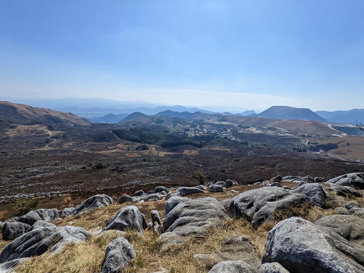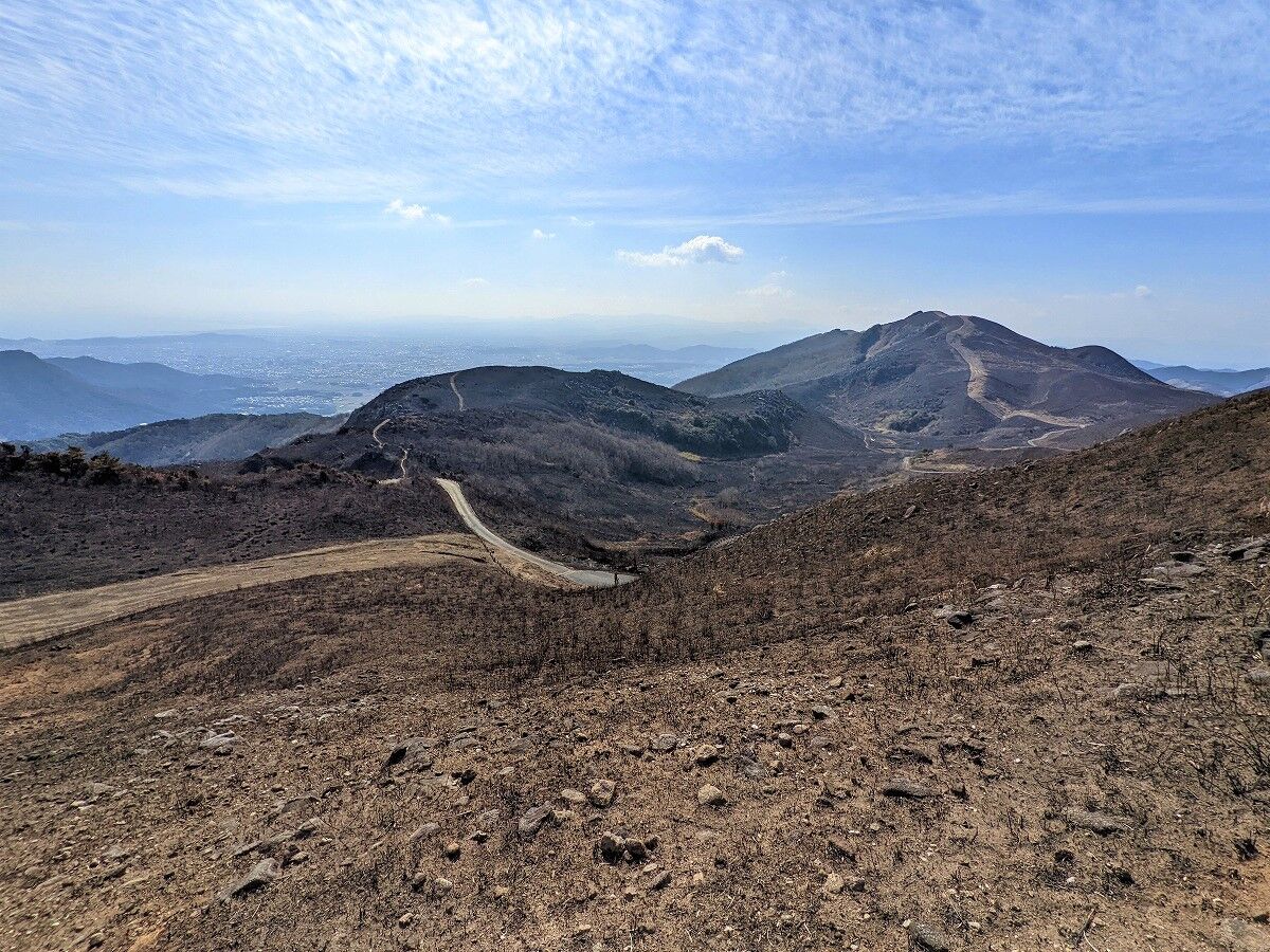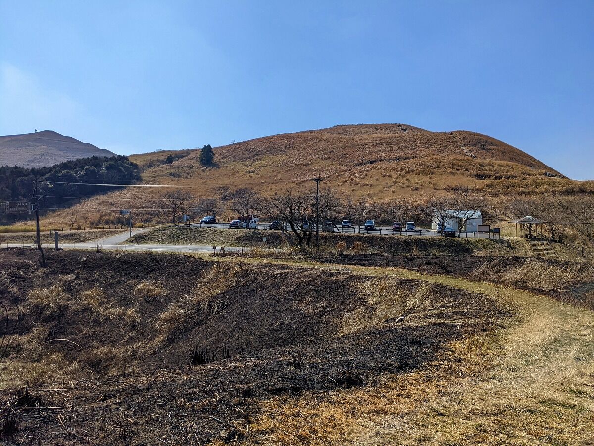 このような野焼き後の台上風景をみながら大平山にとうちゃこ~