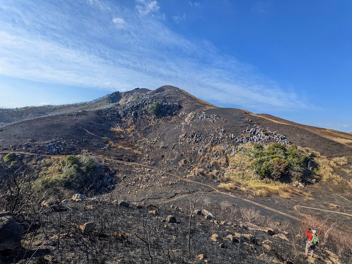 何と何と偽水晶山から水晶山にかけて 焼けています、普段はまず野焼きは実施されない対象区域外ですが ここが飛び火延焼したのですね~