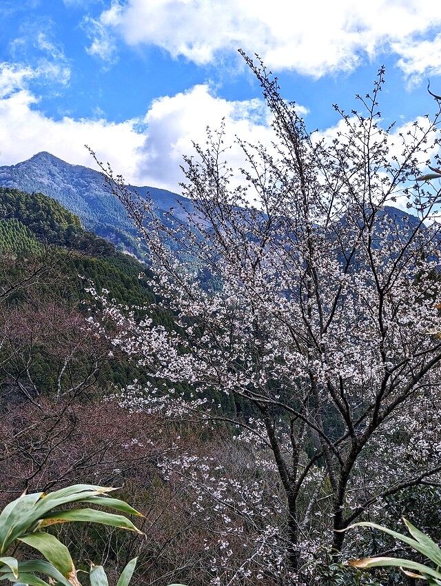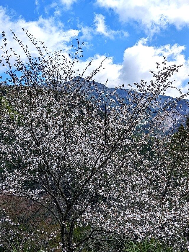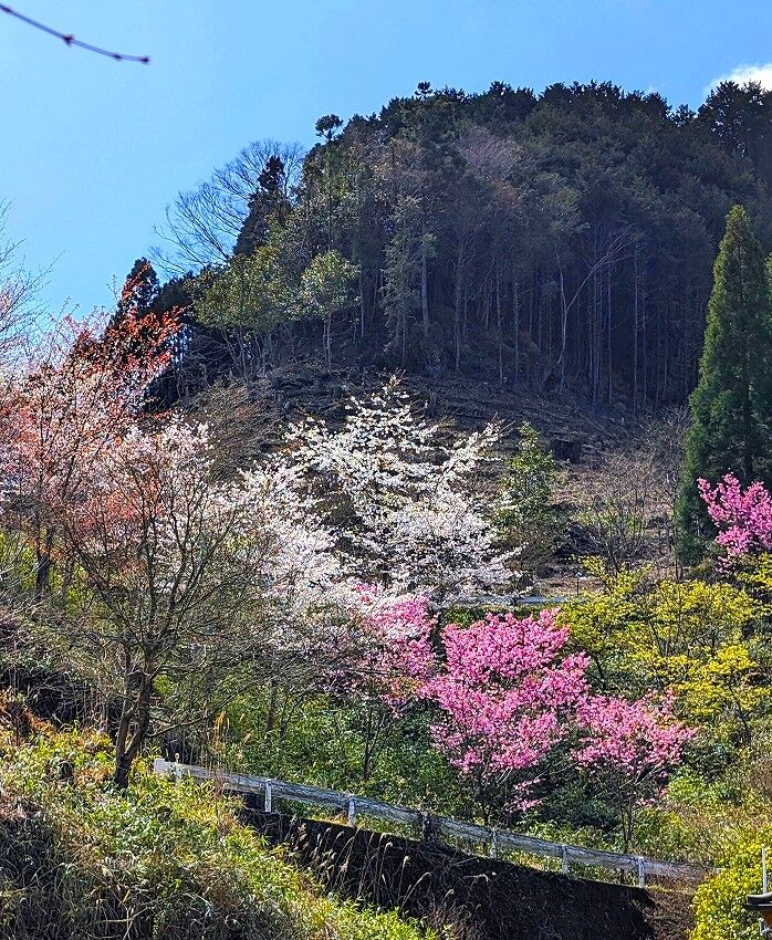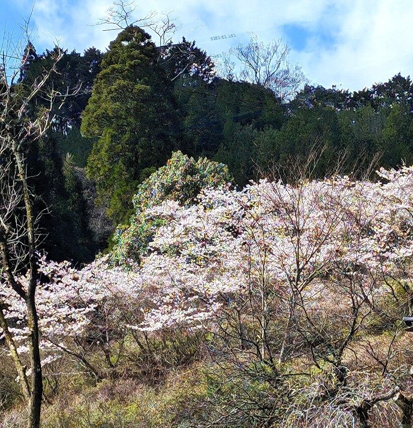 山桜は最盛期のようで山肌を染めていました。