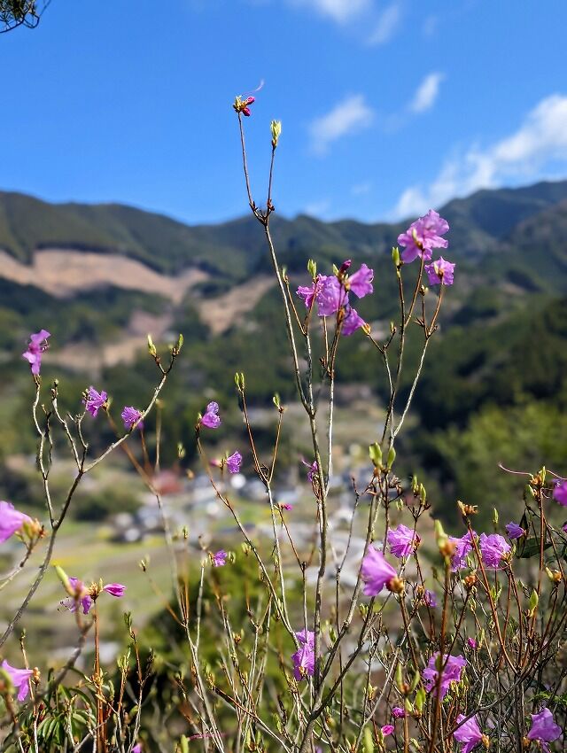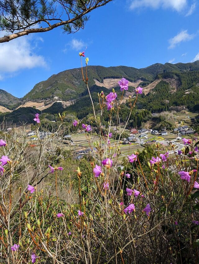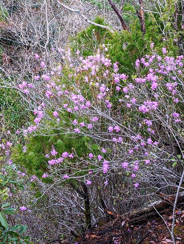 例年、春分の日を境に開花すると言われる ゲンカイツツジ。諸々の事情から 一週間近くの遅れでもう終盤かなと思いつつも山友さんたちと出かけてきた、当初はここのところの体調不良から上部の方まで行けるか非常に不安でした、痛み止めを飲んでソロリと登り初めて、行けるところ、歩ける処までと自分に言い聞かせて行動開始です。現地に着いて見上げる ゲンカイツツジは予想どうり もうほぼ終了、落花して残り花を見られる程度でした。