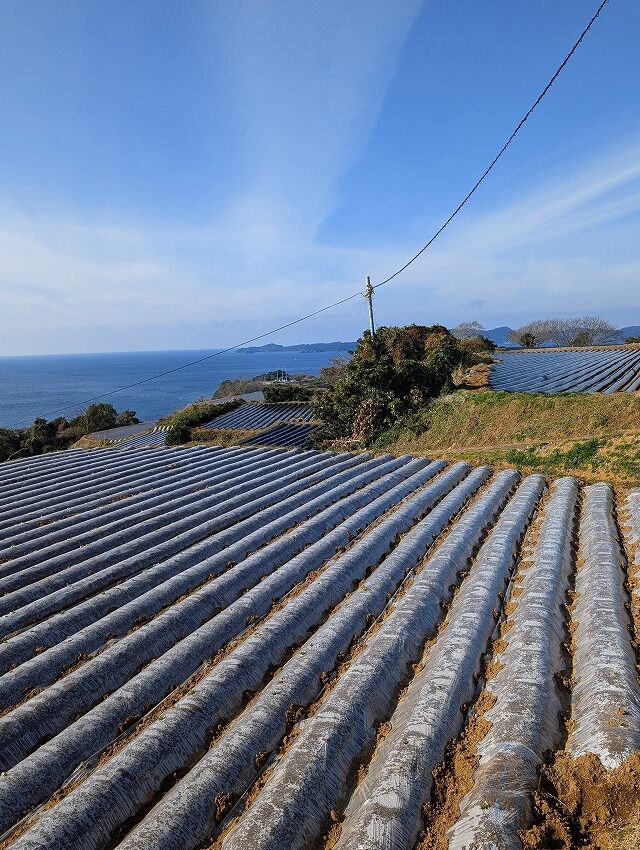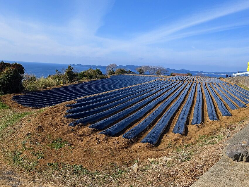 段々と長閑な名産 ジャガイモ畑の マルチシートの広大な畑風景が見られるようになってきました。