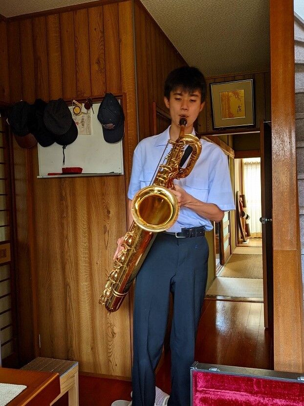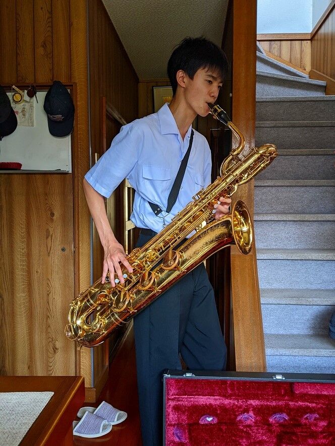 そこで高校ではこの音楽系を選んだそうです、ところが入部してみれば7~8割方 女子部員、私が そりゃ女子にモテモテやろ!と冷やかすと、爺ちゃんとんでもない。最上級生の3年生女子部員からこき使われ楽器の持ち運び、それに男性部員は大太鼓など大きな楽器担当、我が家の孫坊主は バリトンサックス担当。そんなこんなで はや入学から二か月、ほぼテスト日以外は放課後の毎日 午後8時まで練習の明け暮れだそうです。